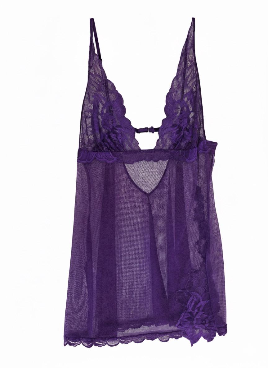 El Baby Doll Victoria´s Secret de Encaje Violeta Transparente es una prenda íntima que combina sensualidad y elegancia en un diseño etéreo y sofisticado. Confeccionado en delicado encaje floral y malla translúcida, ofrece una textura ligera que realza la silueta de manera sutil. Sus copas triangulares con encaje y tirantes ajustables brindan comodidad y un calce perfecto, mientras que su caída amplia proporciona movimiento y frescura. Ideal para ocasiones especiales o para disfrutar de una noche cómoda y femenina con un toque de distinción.