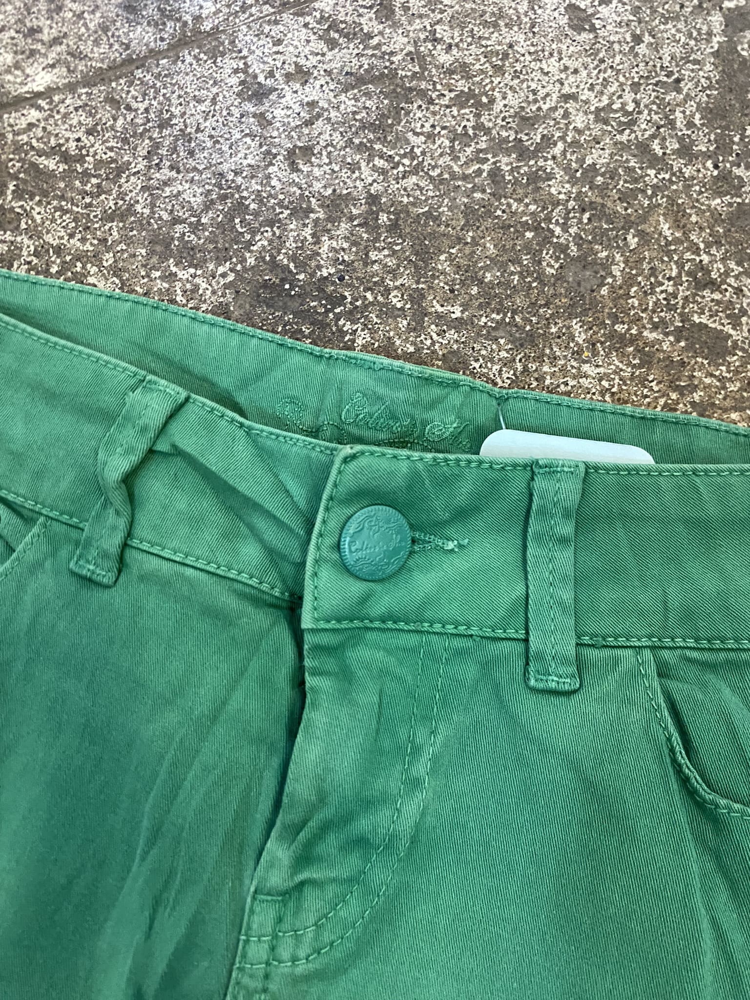 Mini falda color verde un poco petroleo, con bolsillos funcionales delante y atrás